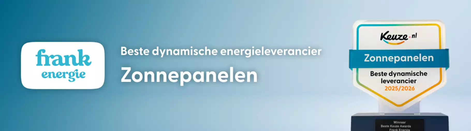 Frank Energie is in 2025/2026 de beste dynamische energieleverancier voor huishoudens met zonnepanelen op basis van prijs. Uit ons prijsonderzoek blijkt dat Frank Energie structureel goedkoop uitvalt voor zonnepaneelbezitters. Op jaarbasis ben je doorgaans het voordeligst uit dankzij de flinke cashback voor nieuwe klanten.