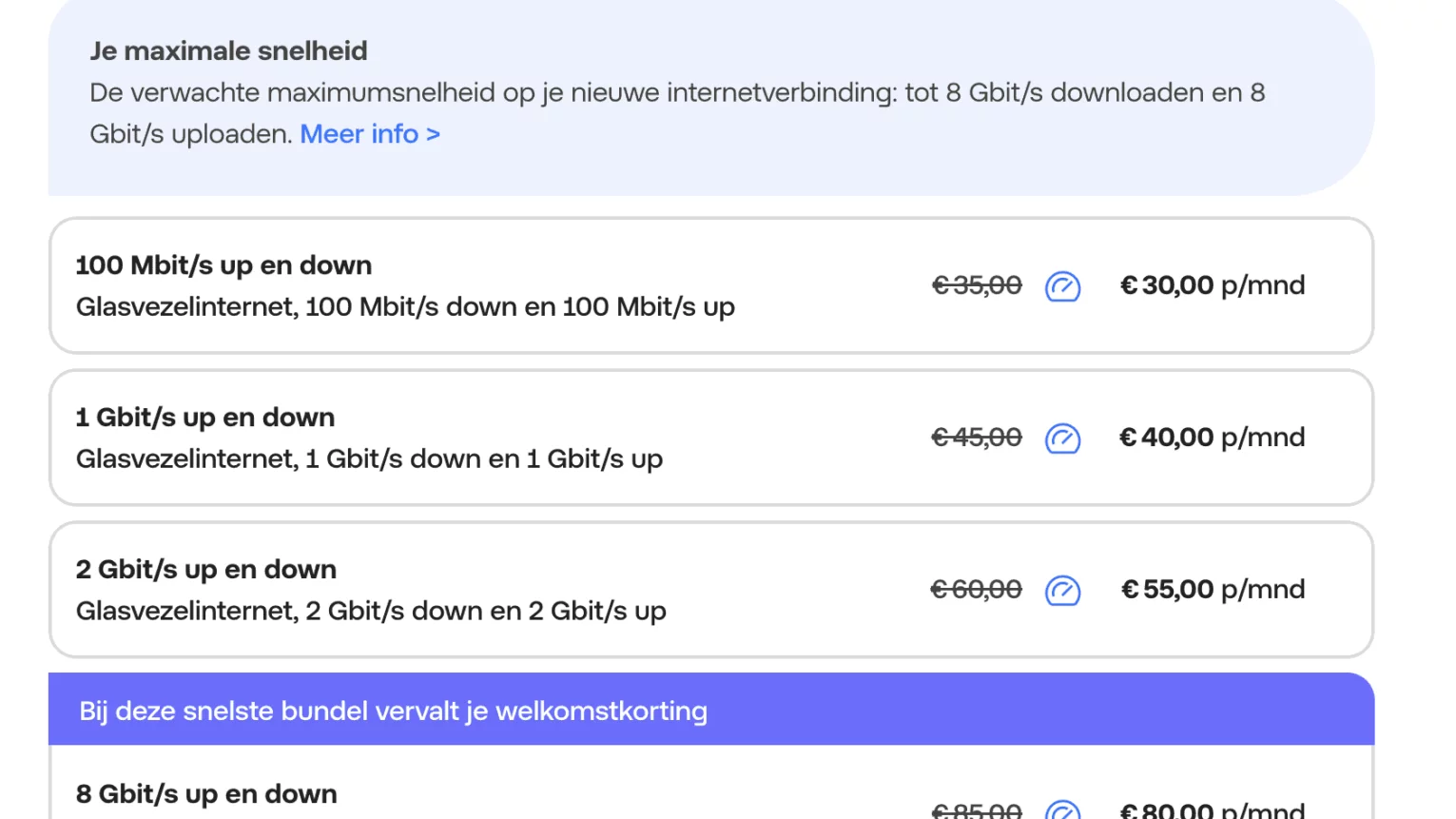 De volgende dag verander ik mijn snelheid terug. Dezelfde snelheid, maar nu voor € 35,00 per maand!